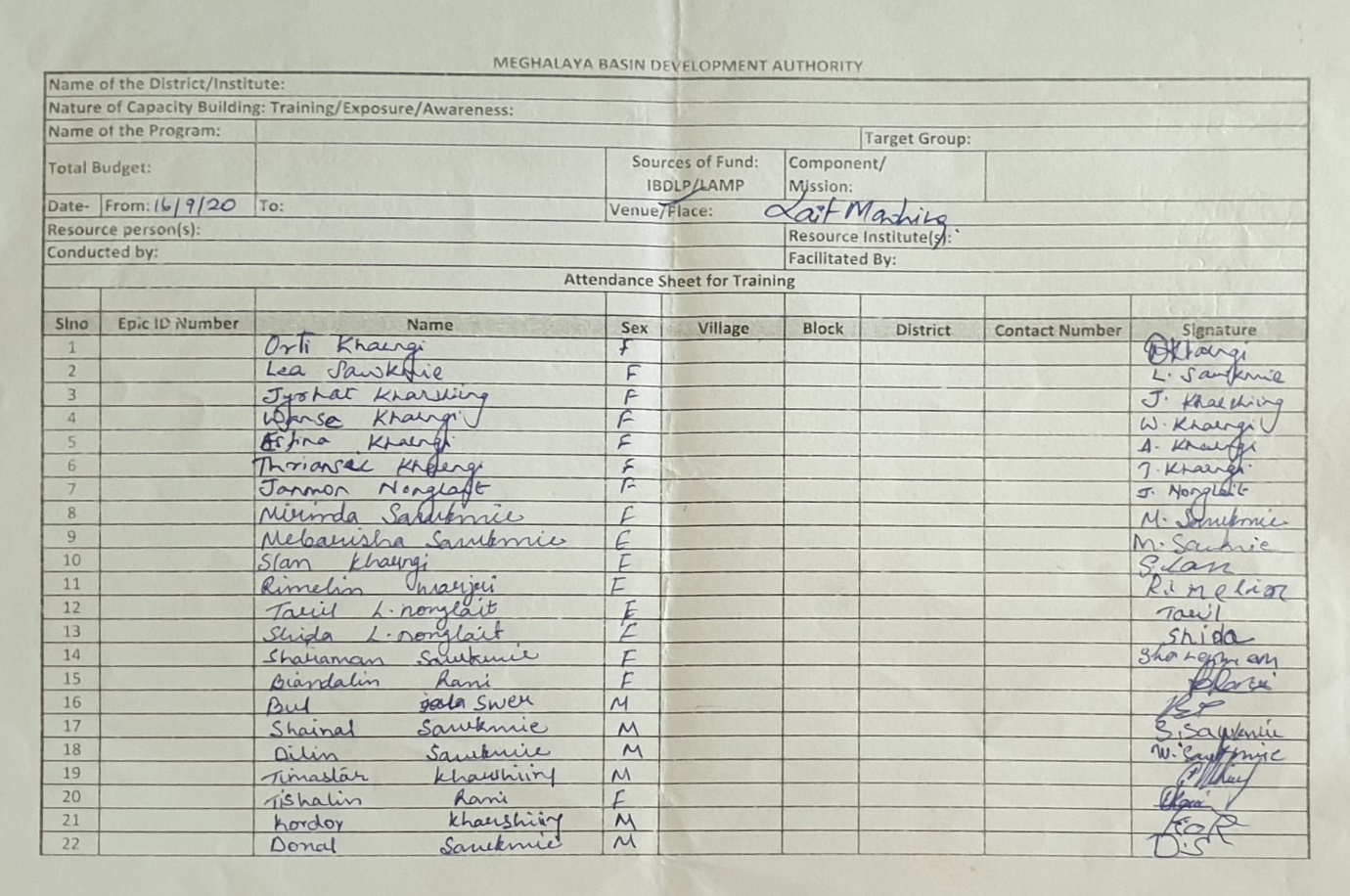| 7 | Liarti Lyngdoh Nonglait | Female | 26 | IV | member | Farmer | Khasi | |
