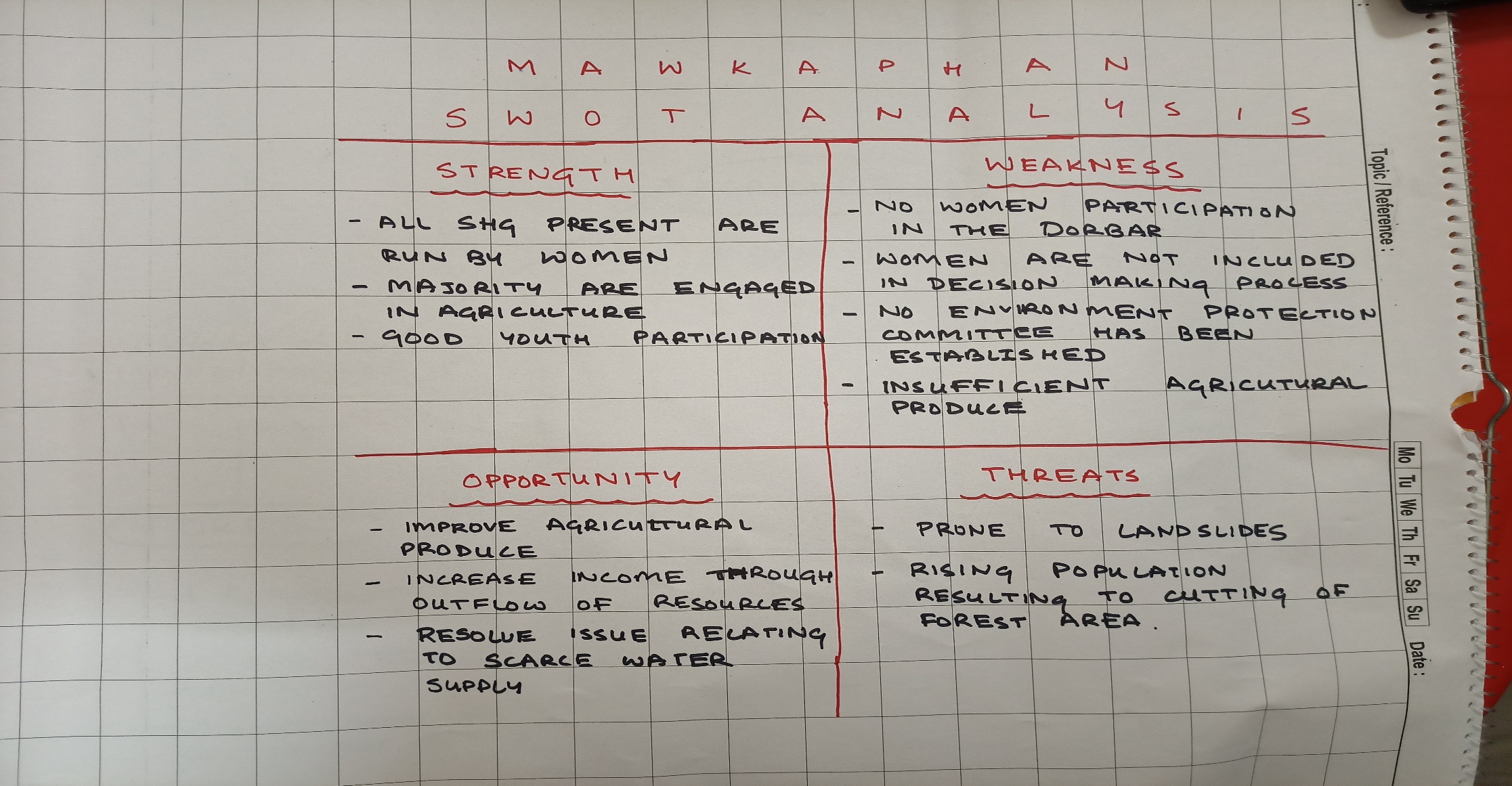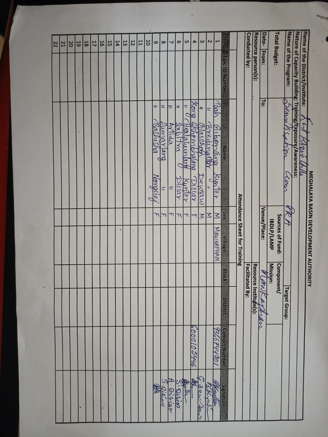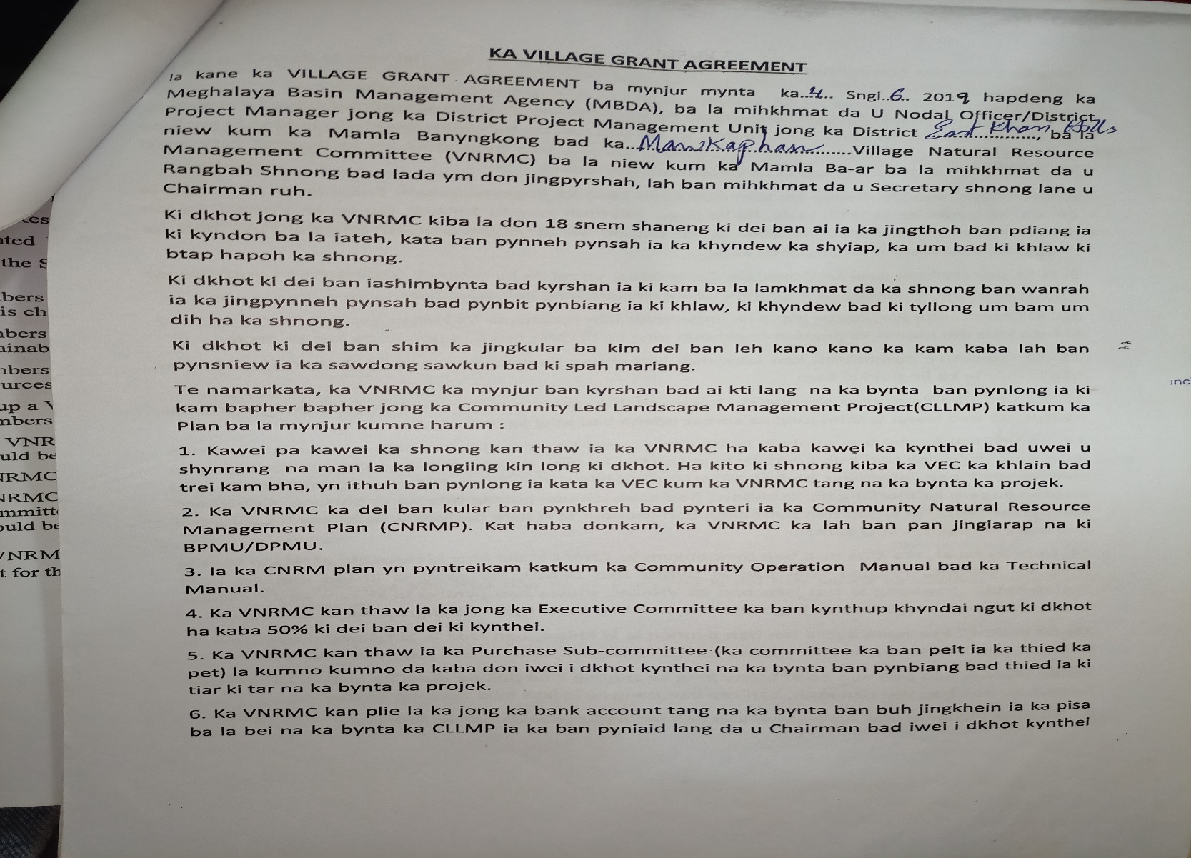 The first contact with Mawkaphan village was established with the headman of the village Bah Gibonsing Kynter on the 10th June 2019. Ground truthing was also done on the same day. Some of the findings after discussion with the headman and ground truthing were: