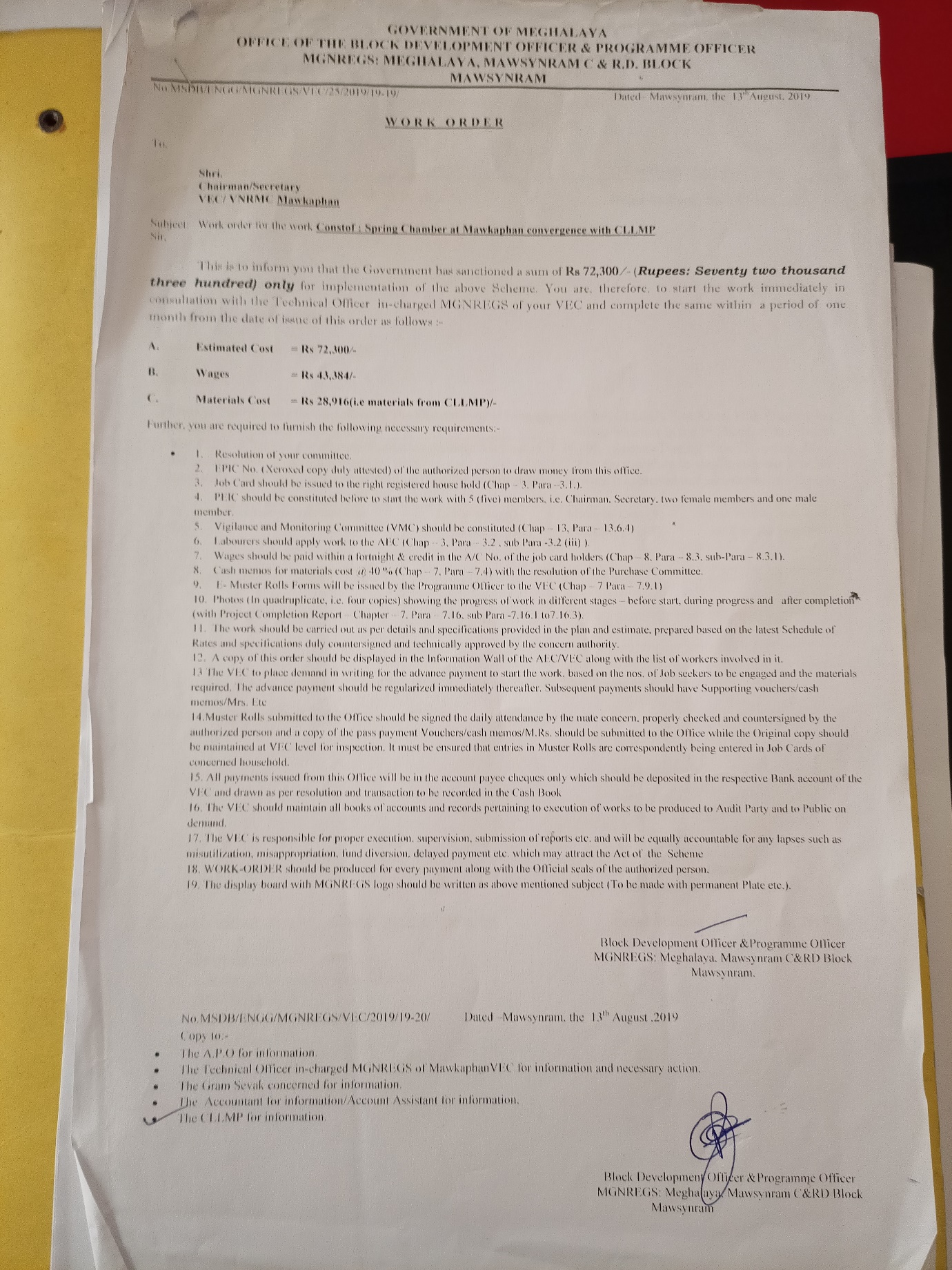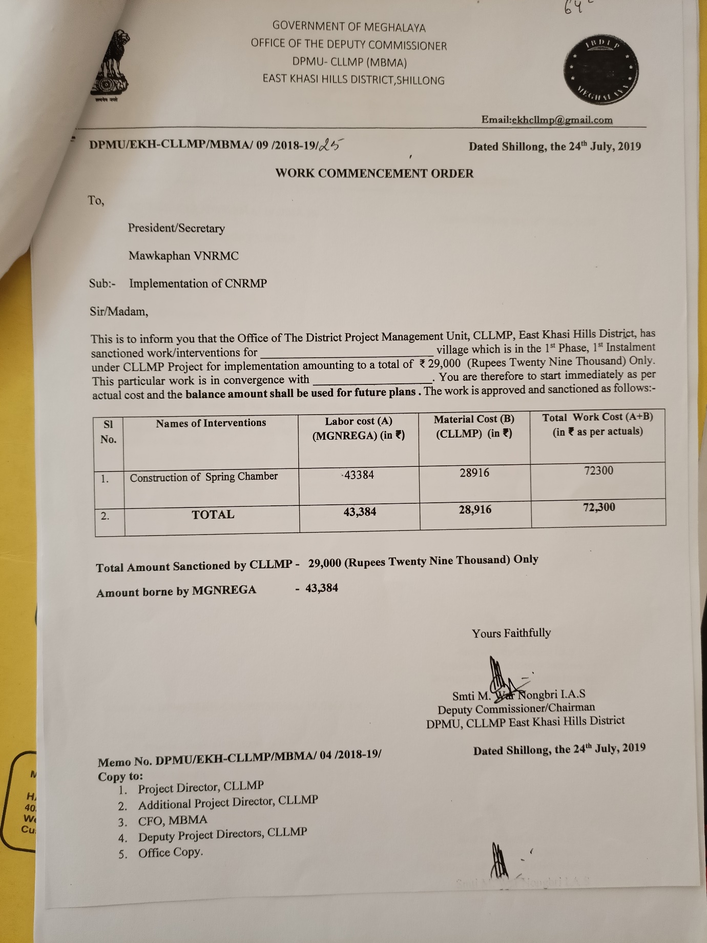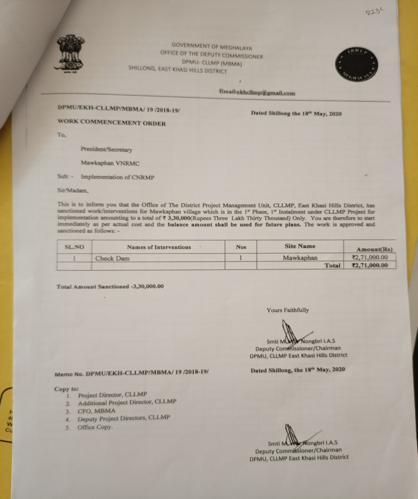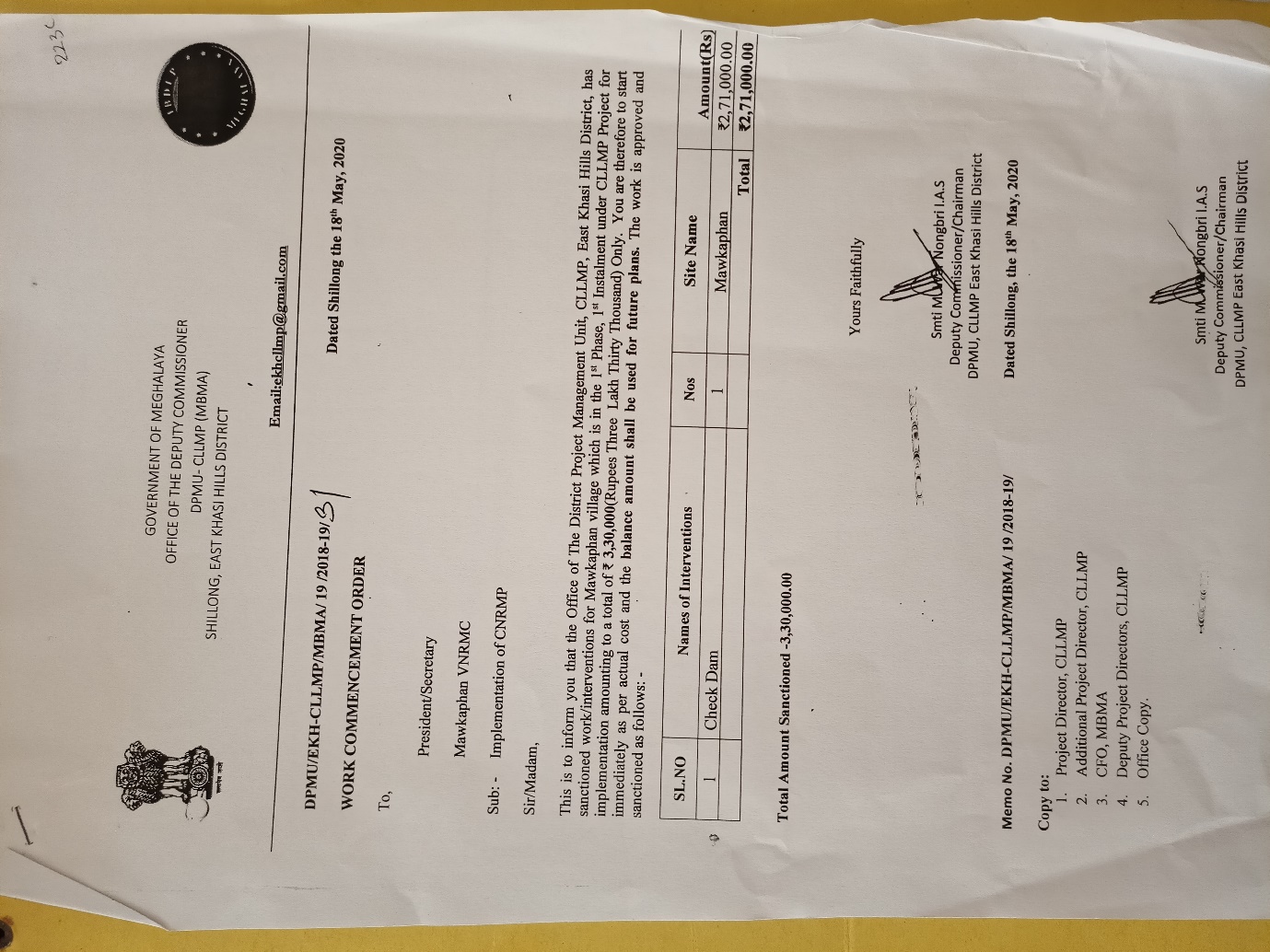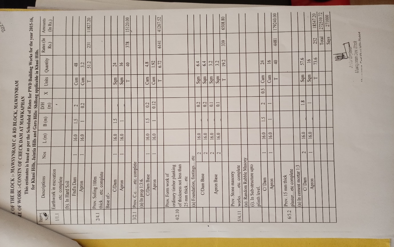 | 2 | Construction of Check Dam | 1 | Mawkaphan | ₹ 2,71,000.00 | N/A | 10 | Not Started |