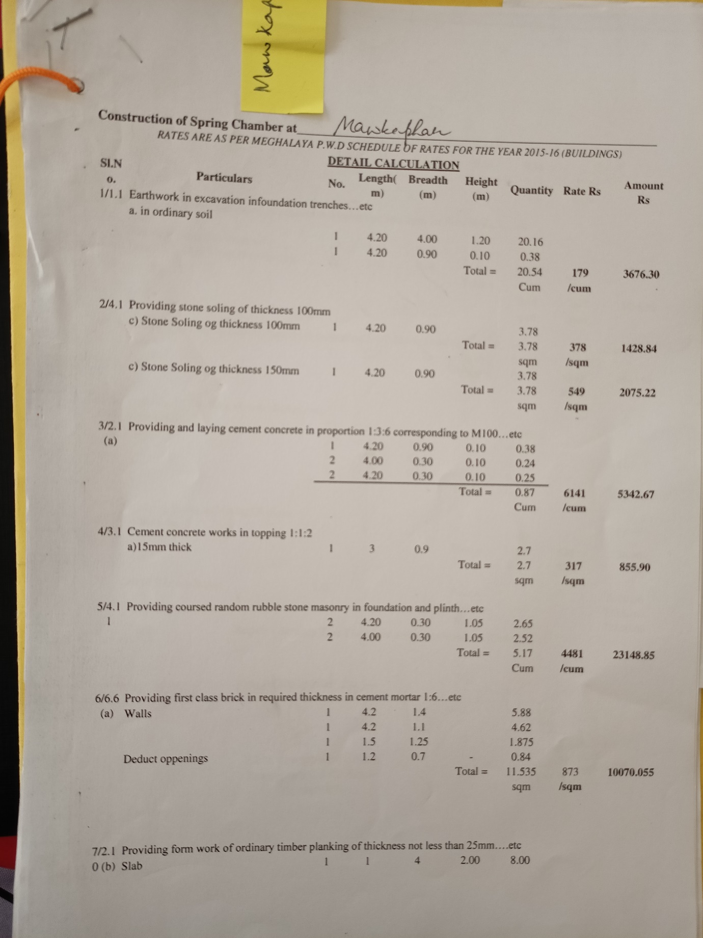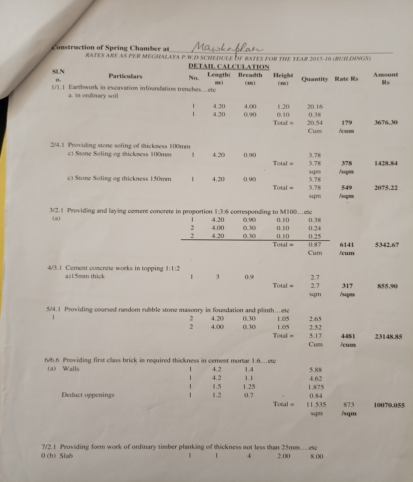 | 1 | Construction of Spring Chamber | 1 | Mawbniat | 25.29913 91.56655 |