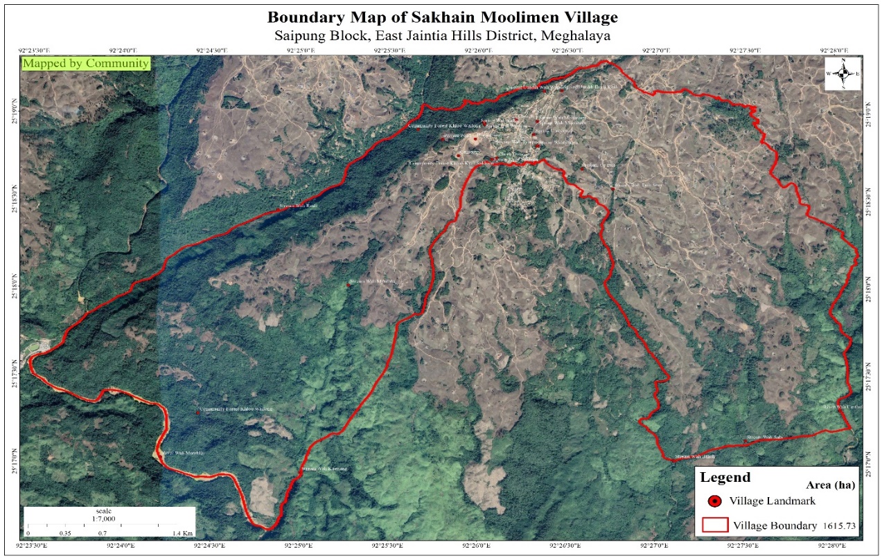 This map shows t he location and area of the both the afforestaion sites which have been implemented in Pynurkba village.
