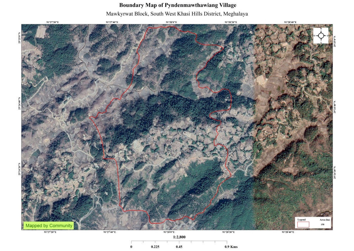 Pyndenmawthawiang village is situated in South West Khasi Hills District under the Mawkyrwat C&RD Block. The village is about 14 Km away from the District Headquarters i.e. Mawkyrwat and about 16 Km away from the Block Headquarters. It has a total geographical area of 158Ha and falls under the Hima Maharam Syiemship. The village has a total population of 590 comprising of 324 males and 266 females. All the residents of the village belonged to the Khasi Scheduled Tribe. The average rainfall is 1200mm and the type of soil is mainly loamy soil.