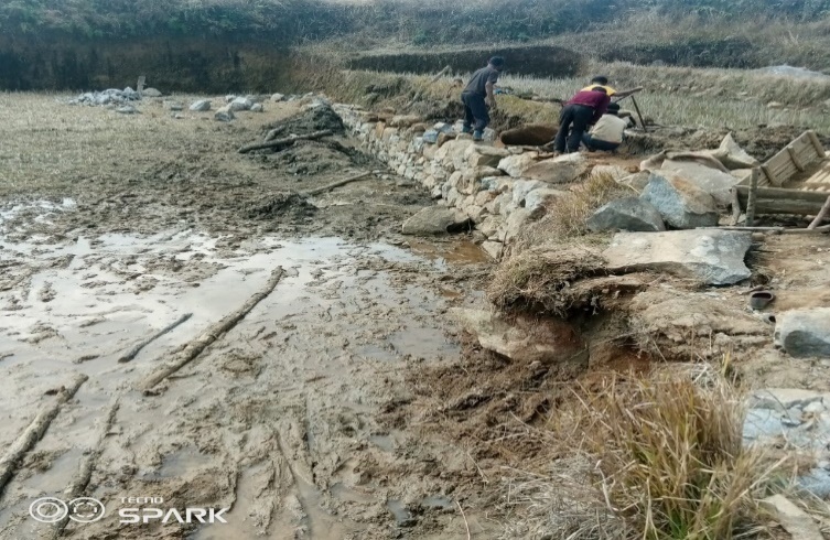Fig 28: Before, during and after of retaining wall at Domdohlong.