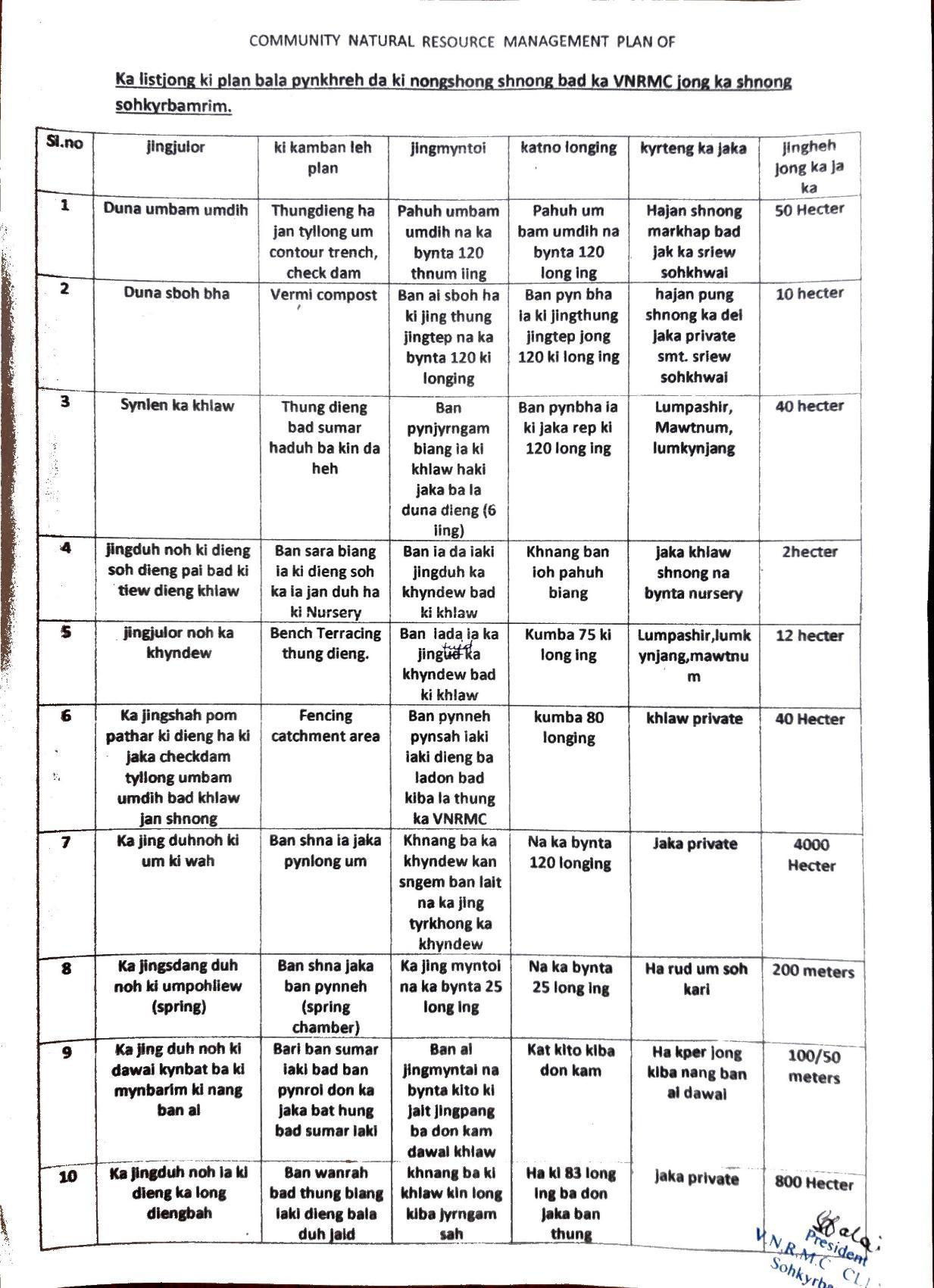 A VILLAGE REPORT ON SOHKYRBAM RIM UNDER JIRANG BLOCK RI-BHOI DISTRICT RI-BHOI DPMU MBMA-CLLMP |